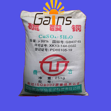 產(chǎn)品特點:藍(lán)色結(jié)晶,無臭,比重2.284g/cm3,溶于水及稀的乙醇,水溶液具有弱酸性,在干燥空氣中慢慢風(fēng)化,其表面變?yōu)榘咨蹱钗。加熱?span lang="EN-US">110℃時,失去四個結(jié)晶水,高于150℃形成白色易吸水的無水硫酸銅。